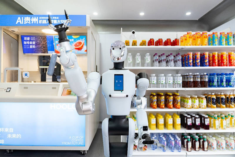 图为“AI机器东说念主店长”Galbot与“AI咖啡专家”认知合作责任。